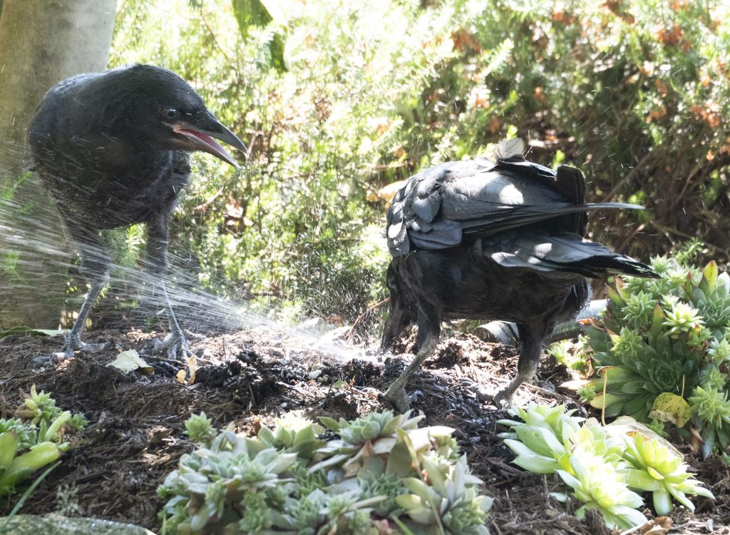 All was very quiet for a day or two , but then one morning I woke up to the softest crow conversation I'd ever heard going on in a tree near the house. Little mewing sounds and soft quacks were being answered by very soft, almost raven-complex, murmurings from M & M. I honestly have rarely heard anything so lovely.