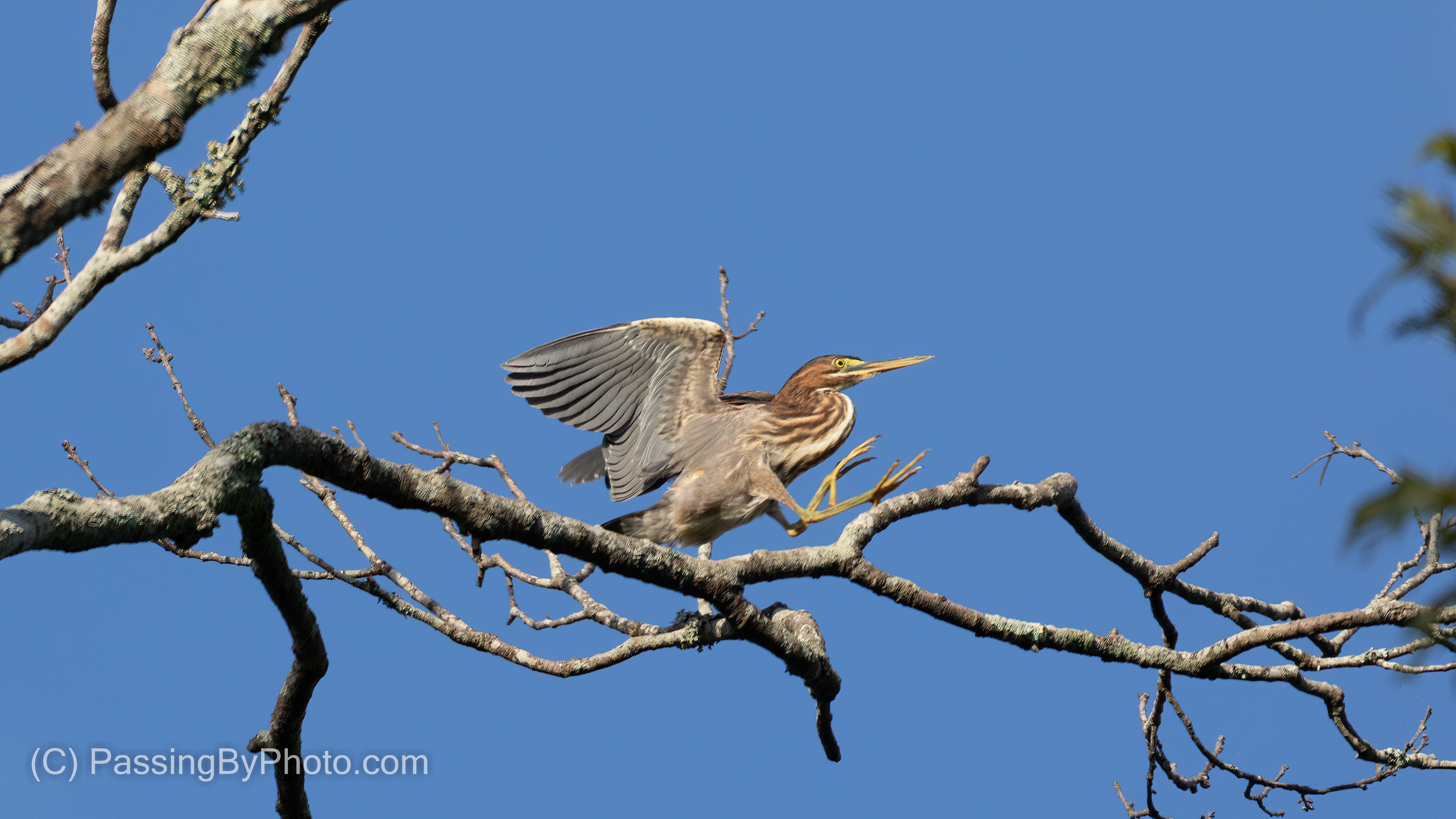 Ellen Jennings posted: "I heard a familiar chattering and spotted this Green Heron precariously balanced on a limb overhanging the dike. He soon moved to a more secure location. There were at least two other Green Herons in the vicinity and I'm not sure if they wer"