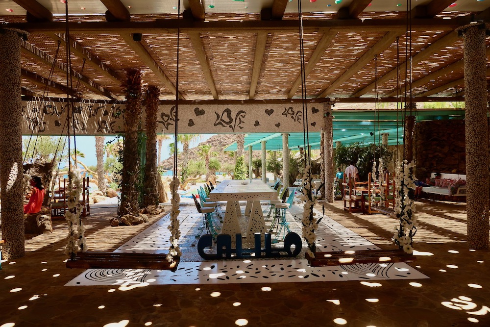 - Currently, Calilo has one restaurant, where serves delicious food all day (although guests can also have their meals at the rock pool, on the beach or in their room). Located between the lobby and the pool area, the open-sided restaurant is styled in the resort's signature Gaudi-esque decor and features several hidden nooks & corners (e.g. sunken dining areas within the pool). In the morning, the venue offers a breakfast buffet while during lunchtime and in the evening (until midnight), a la carte dining is offered with a wide variety of Western and Greek dishes. Calilo's food philosophy is rooted in the Ancient Greeks' belief that a healthy body supports a healthy mind and the resort's kitchen strongly advocates the benefits of a Mediterranean diet.